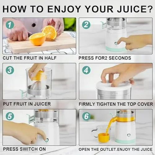 Fácil Operación de Un Toque: Su uso es súper intuitivo. Mantén presionado el botón por dos segundos para encender, coloca la mitad de la fruta, pon la tapa, presiona el botón nuevamente y ¡listo! (Si la fruta es muy grande, córtala en cuatro partes para un mejor rendimiento).